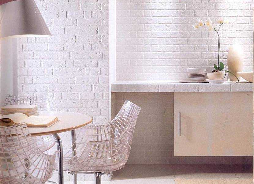 Белый или же серый кирпич, наоборот, придаст комнате интересный дизайн и свежесть. Красиво выглядит декор «под старину» или в стиле лофт. Если семейный бюджет ограничен, то можно приобрести пенопластовый кирпич под покраску и легко подобрать оттенок для отделки. Для облицовки кухни и ванной комнаты желательно выбирать панели, изготовленные на основе цемента, они имеют разный размер, обладают низким весом и выпускаются в интересной фактуре. В гостиных и спальнях отделку можно выполнить гипсовыми кирпичом, который выглядит выразительно и стильно, но боится влаги.