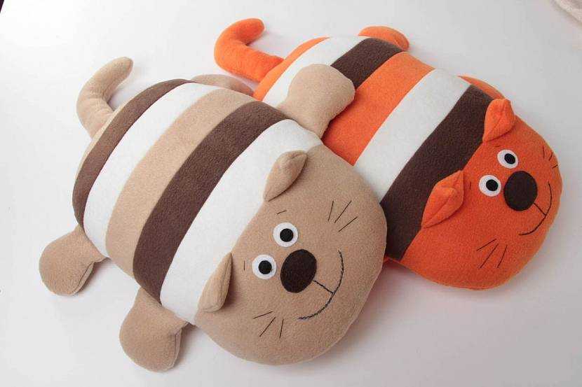 Если из ткани делать подушки-игрушки, то они требуют изготовления точной выкройки. Для этого можно создать шаблоны из бумаги или картона. Их легко нарисовать от руки или распечатать готовые. При пошиве лицевой стороны можно использовать объемные детали, создавать реалистичные изображения мордочек животных.