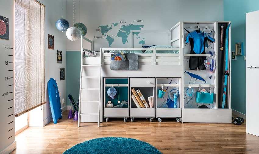 Преимущество есть у семьи, где дети примерно ровесники, а детская комната просторная и с высокими потолками. Но чаще бывает, что в семье все разного возраста, от подростков до малышей, а помещение скромное по размерам