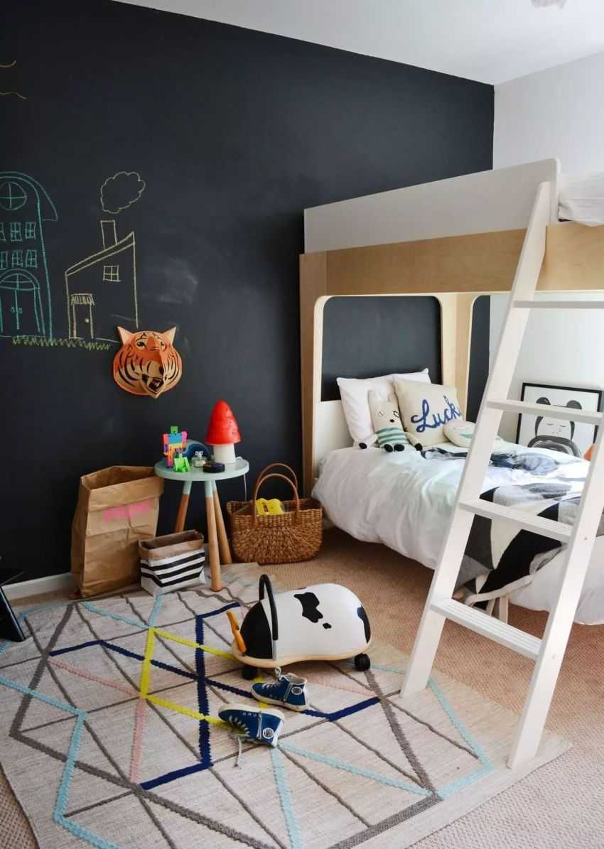 Также часто можно встретить на фото дизайнов детских комнат маленькую графитовую стенку, которая играет роль мольберта для хозяина помещения.