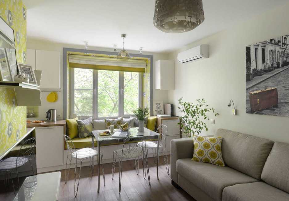 Чтобы помещение не получилось загроможденным, приходиться тщательно выбирать предметы мебели. Предпочтение отдается многофункциональным моделям. Например, складной стол большую часть времени занимает минимум места, а при необходимости позволяет с комфортом расположиться хозяевам и гостям.