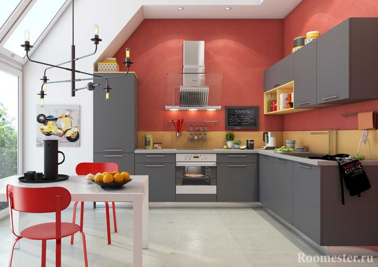 Кухня-столовая с нейтральными основными, большими поверхностями в лучшем свете представит цветовые акценты. Гранат, мандарин, мята – эти оттенки даже своими названиями задают определенный настрой. Только площадь может наложить некоторые ограничения на глобальное количественное использование.
