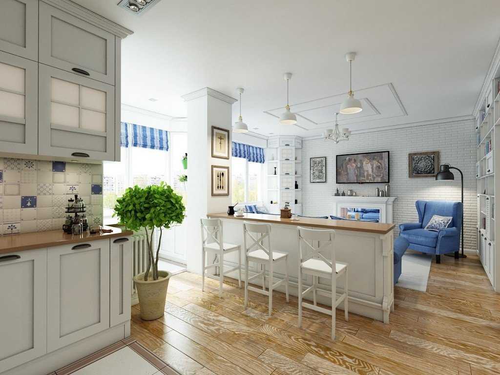 - Отделяют зону кухни и гостиной обеденным островом и барной стойкой.