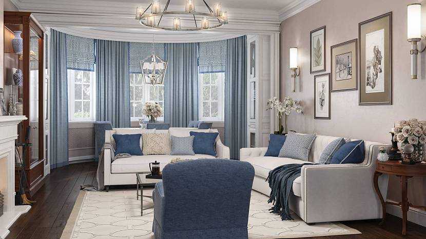 В гостиных, выходящих на северную сторону, лучше использовать теплые оттенки, а южное направление не пострадает и от холодных тонов.