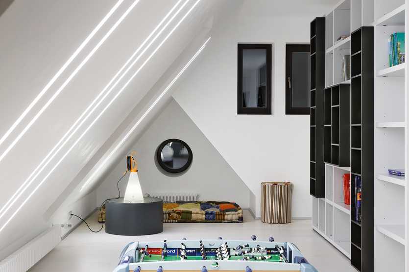 На мансарде обычно устраиваются спальни, детские комнаты и просторные ванные. Функциональность чердака зависит не только от формы крыши и способа расположения интерьеров, но и от соответствующего освещения. Качественный искусственный свет может заменить естественный.