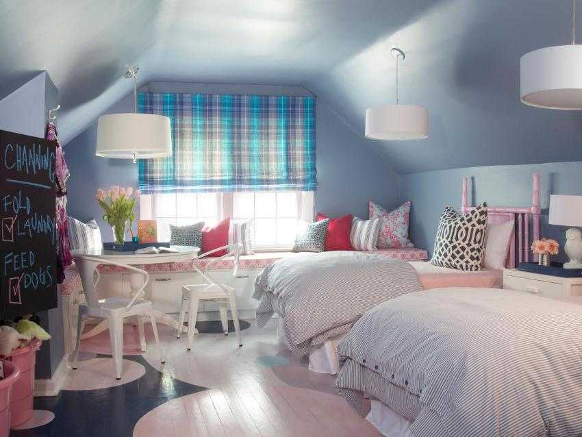 Важно постараться создать универсальный фон, который сможет подойти и шестилеткам, и подросткам. Чтобы детская комната в мансарде не показалась скучной, обязательно нужно добавлять несколько ярких красок