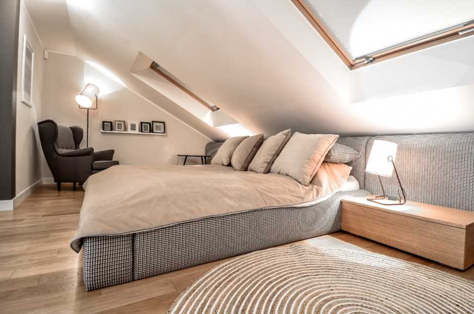 Уютная мансардная спальня — что использовать на полу?