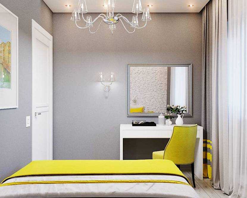 Дизайн современной спальни 12 кв. м. Сочетание черного и желтого цветов в интерьере спальни