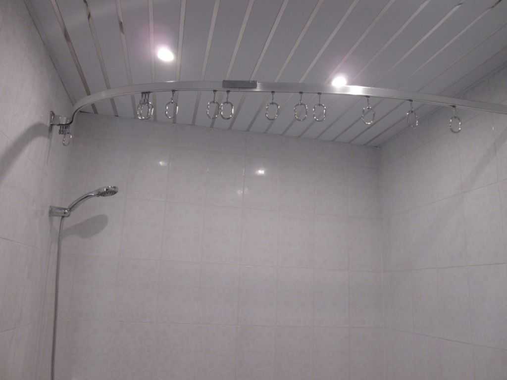 Для потолка лучше всего подходят натяжные полотна. Они гармонируют с любым стилем, не боятся воды, долговечны, быстро монтируются и способны защитить остальную отделку в случае потопа сверху. В маленькой ванной хорошо смотрятся глянцевые и сатиновые разновидности белого цвета. Можно использовать фотопечать: облака, верхушки деревьев на фоне неба или капли воды добавят помещению объема. Если натяжная пленка не подходит, то можно покрасить потолок краской, оформить ПВХ панелями или подвесной потолочной плиткой.