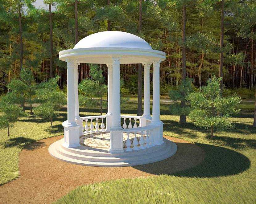 Беседки могут иметь простую конструкцию, а могут быть настоящим произведением искусства. Их изготавливают из деревянного бруса, кирпича, камня, бетона и даже мрамора. Последние оба варианта подходят не только для городских парков. Они также уместны для частных территорий с большой площадью.
