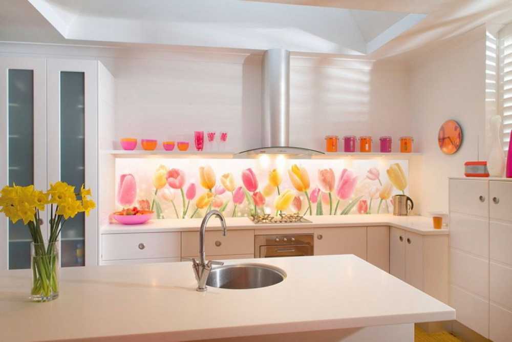 - Возможность самостоятельно выбрать дизайн, можно проявить всю свою фантазию и подобрать к любому интерьеру. Можно наносить на него изображения, красить или покрывать блеском, идеально смотрится и подсветка фартука.