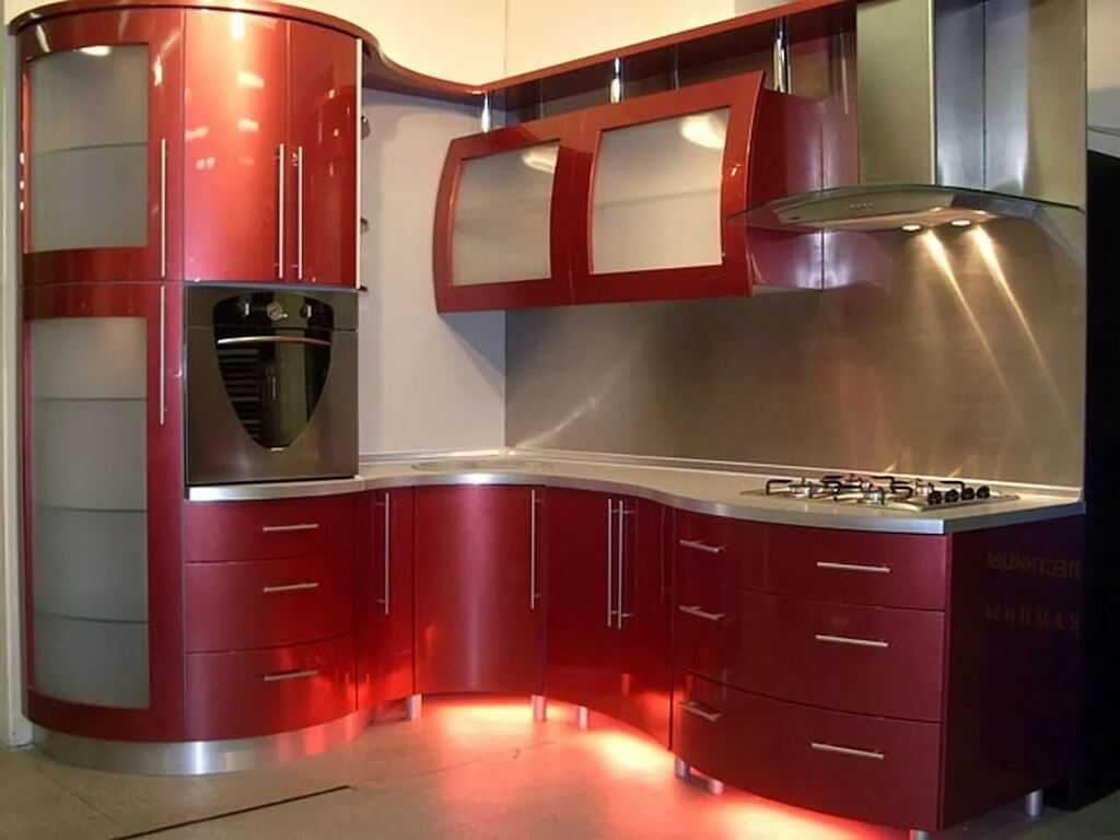 Отдельные гнутые элементы возможны и на маленькой кухне. Облицовывается такая поверхность пленкой — акриловой или ПВХ.