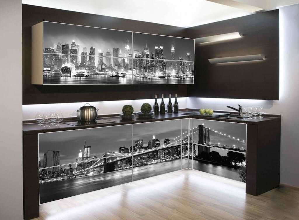 Кроме того, единая бесшовная поверхность обычно выглядит более привлекательно, особенно если для оформления рабочей зоны кухни было выбрано крупное реалистичное изображение.