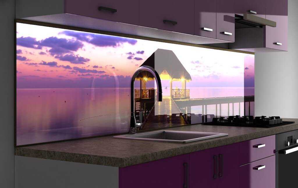 Фотопечать — самое простое и популярное решение, которое приходит в голову, если говорить про декорирование стекла. Подобная панель даже имеет специальное название — скинали.