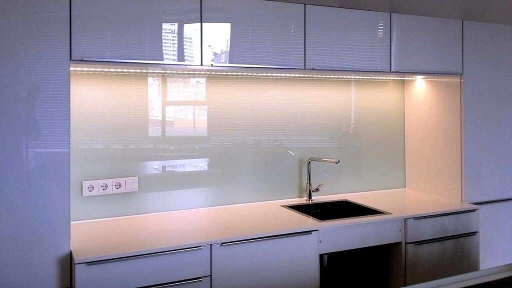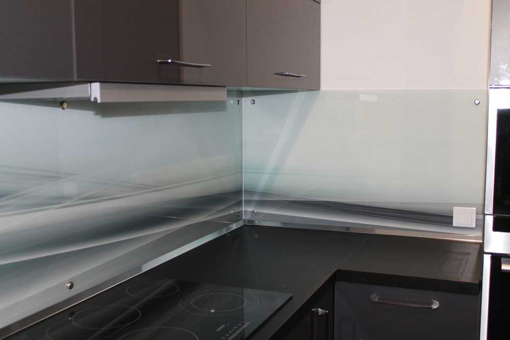 Даже если стеклянный фартук разобьется, он не осыпается, осколки удержит ламинирующий слой