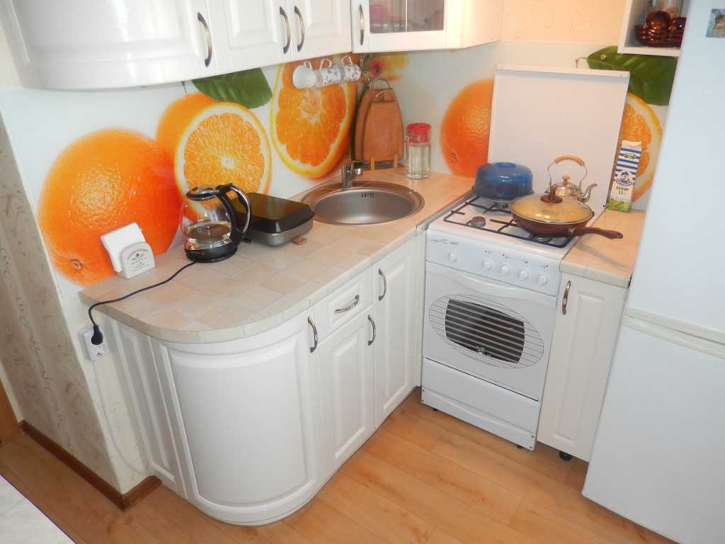- На маленькую кухню не рекомендуется выбирать фартук с массивным принтом.