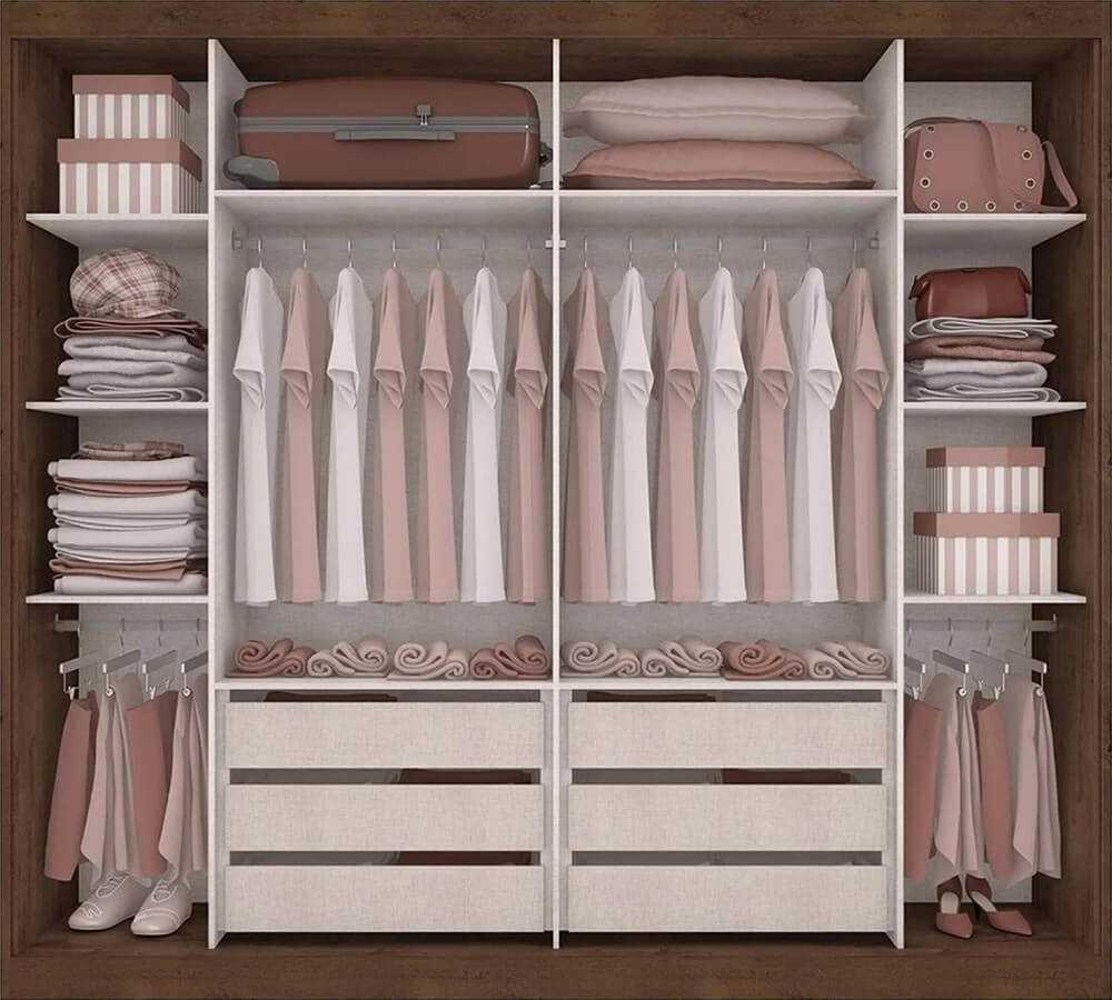 Любой шкаф имеет полки и отделения для тремпелей. Это самый распространенный вариант. Если шифоньер маленький, то много приспособлений там установить не получится, но при желании можно встроить несколько выдвижных ящиков. Здесь понадобятся специальные приспособления.