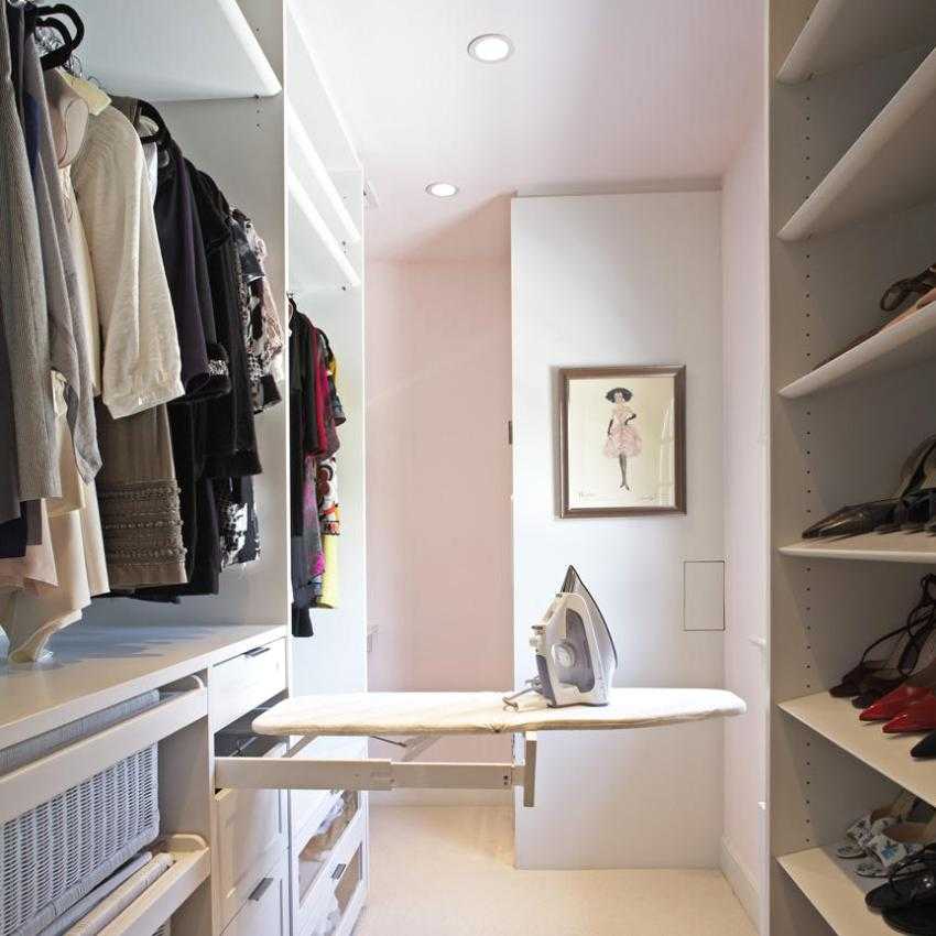 Если у вас нет гардеробной, то наверняка имеются платяные шкафы: в коридоре, в спальне, в гостиной. Специально отведенное место под вещи позволяет избавиться от всех прочих шкафов и использовать освободившееся пространство для других целей. Особенно удобна гардеробная в квартире молодой бездетной пары или холостяка/холостячки, обычно ее располагают рядом со спальней. В этом случае не придется искать место для громоздких платяных шкафов и учитывать, сможет ли свободно открыться дверца. Здесь при необходимости можно разместить встроенную гладильную доску или сушилку.