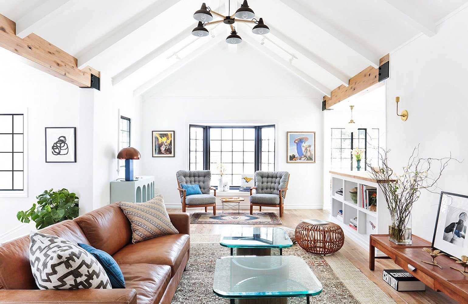 Для гостиных, оформляемых в скандинавском стиле, довольно легко выбрать отделку потолка. К подходящим вариантам относятся: