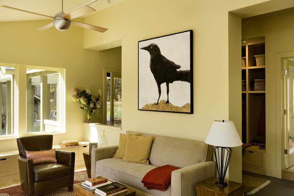 Зеленый и желтый также подходящие цвета для гостиной. Свяжите желтые диваны или кресла с текстилем, таким как зеленые шторы, коврики или подушки. Цветовая гамма должна быть основана на кремовом или бежевом фоне, чтобы передать специфическое расслабление природы.