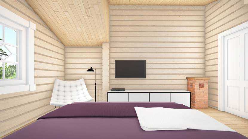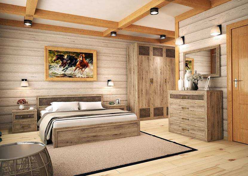 Дизайн спальни деревянного дома