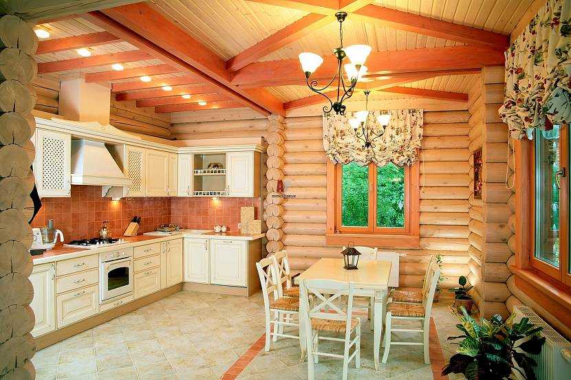 Интерьер кухни в деревянном доме: фото