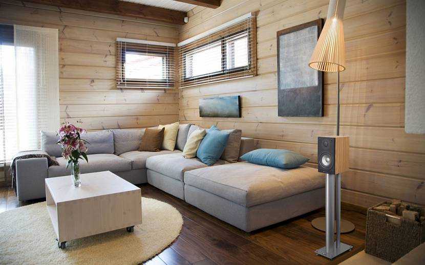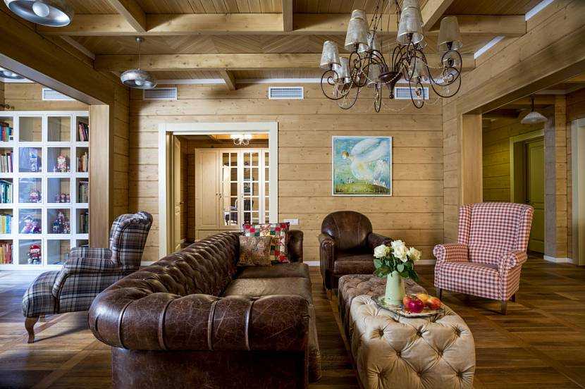 Интерьер гостиной в деревянном доме