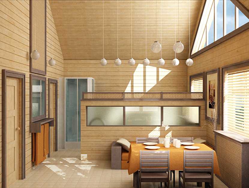 Профилированный и клееный брус: интерьер, фото домов внутри из этих материалов
