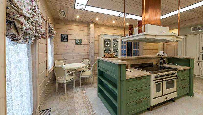 При планировании интерьера кухни в деревянном доме нужно учитывать несколько моментов: