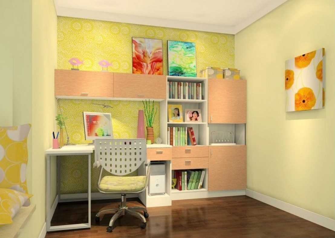 В прямоугольной комнате важно расставить мебель для обучения, чтобы сэкономить место. Для этого лучше поставить стол около окна, но не размещать стул спиной к двери, это вызывает дискомфорт