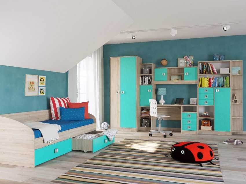 В комнате школьника не стоит делать акцент на ярких стенах, чтобы ребенок не отвлекался от занятий. Можно выбрать для стен, потолка нейтральные тона, а текстиль, предметы декора сделать более выразительными. Так же нужно подойти к оформлению комнаты, в которой будут жить разнополые дети.