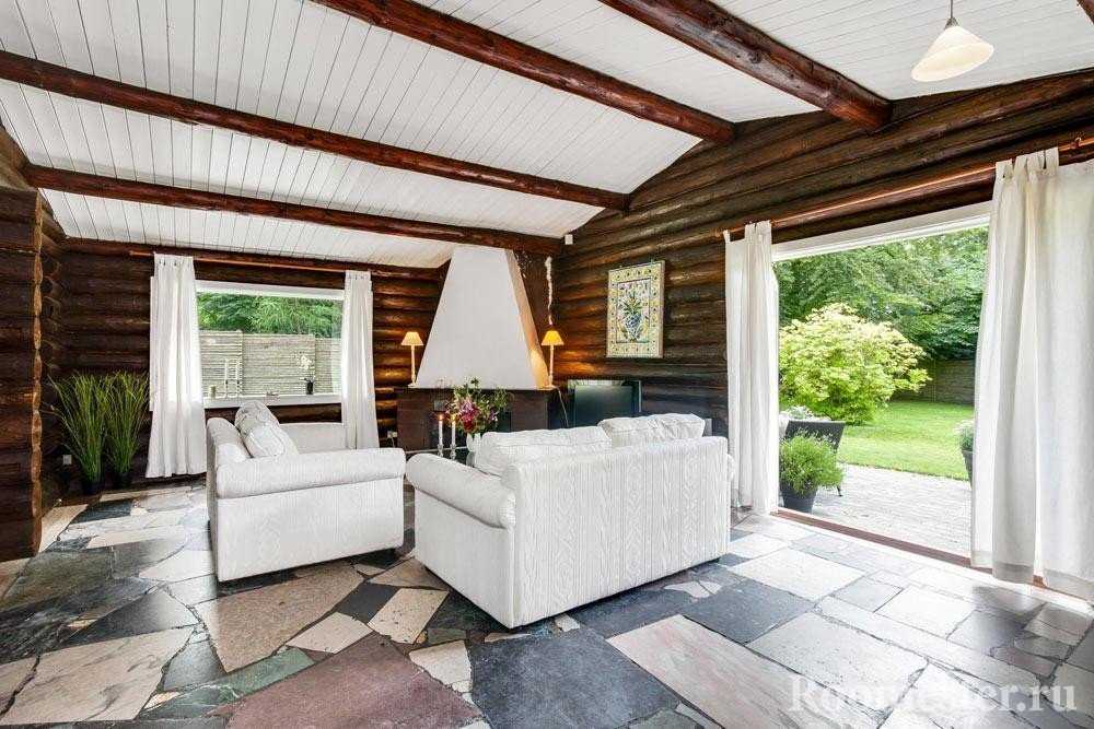Главная особенность любого бревенчатого дома в том, что его стены построены из бревен. Внутренняя отделка стен в таких домах почти всегда одинаковая – обычно их не штукатурят и не красят. Чтобы подчеркнуть красивую фактуру дерева и натуральный цвет, бревна обрабатывают специальным составом. Трещинки и шероховатости не портят внешний вид жилища, а наоборот усиливают красоту и естественный вид древесины.