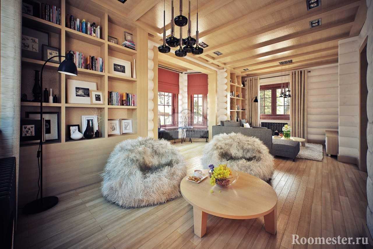 Если вы еще не определились, каким хотите видеть интерьер вашего деревянного дома, стоит посмотреть фотографии готовых интерьеров гостиных, кухонь и спален.