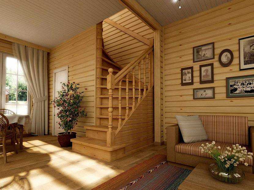 Деревянный дом из бруса или бревен отлично будет смотреться в любом деревенском стиле.