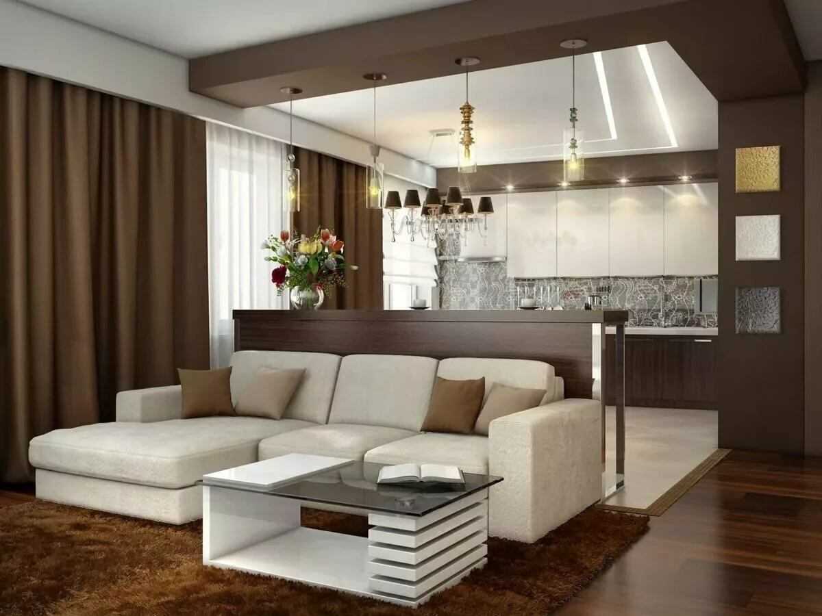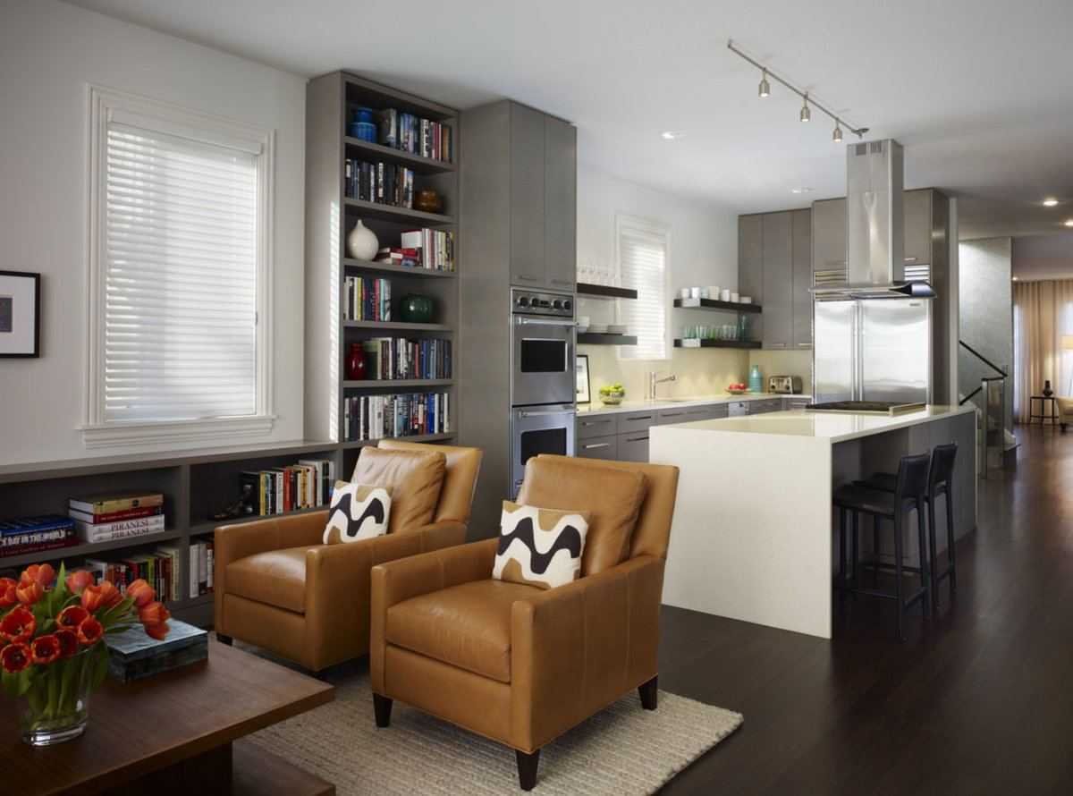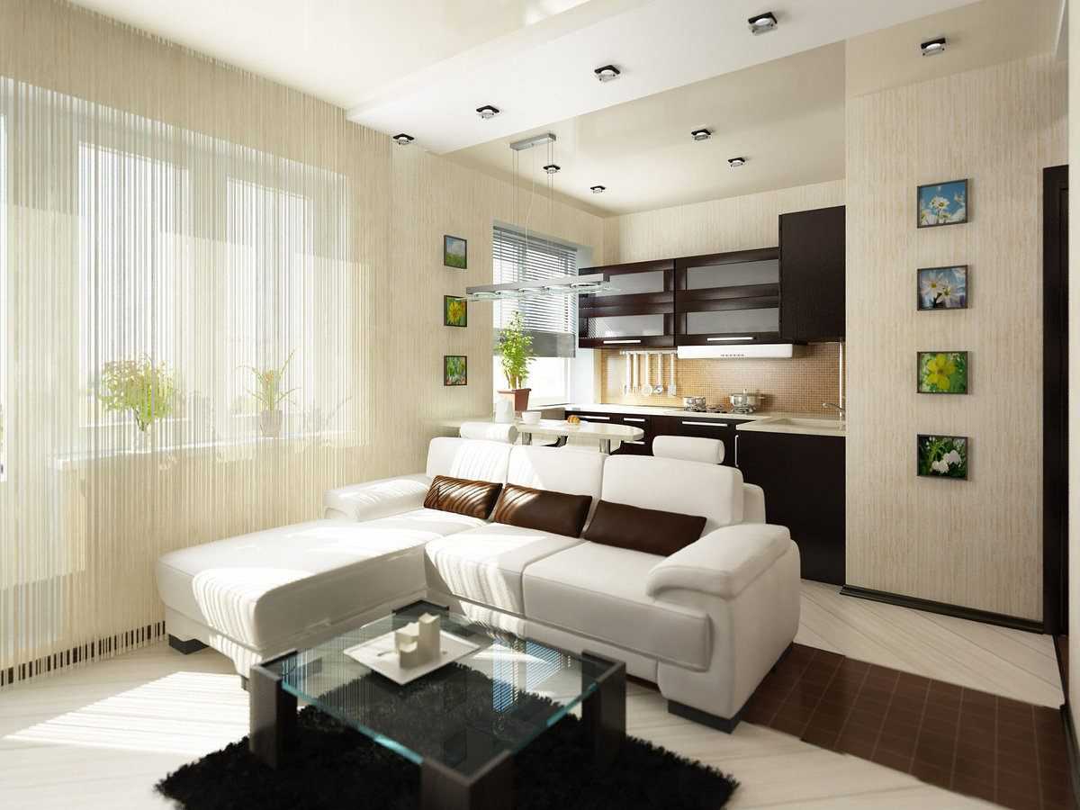 Если гостиная не может похвастаться своими габаритами, то есть способы их увеличения. Все чаще в малогабаритных квартирах присоединяют к ней кухню. Таким образом, получается отличный вариант студии. Он обладает большими возможностями и позволяет реализовать любые дизайнерские решения.