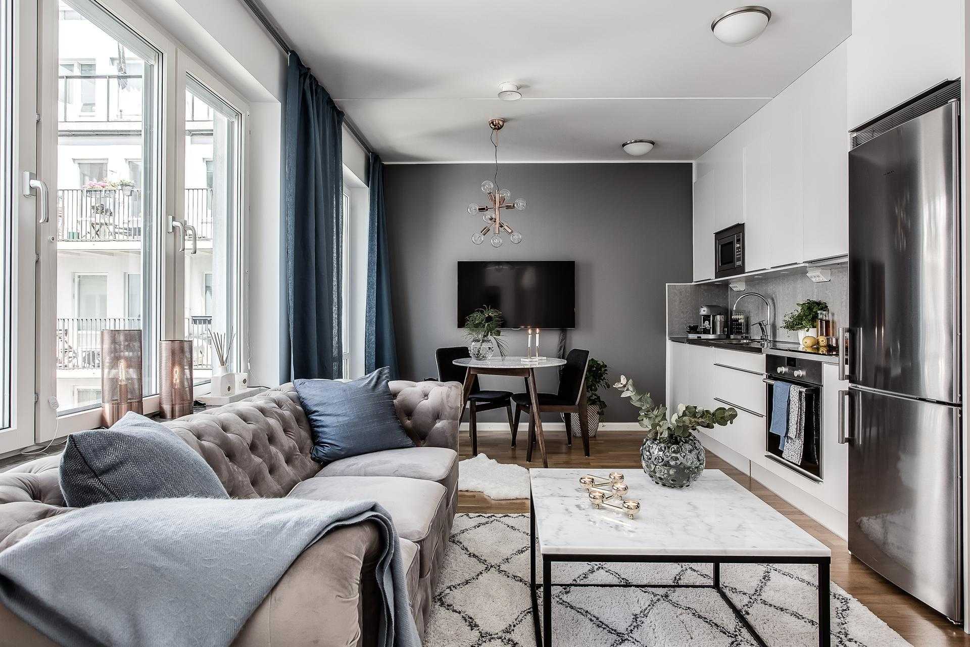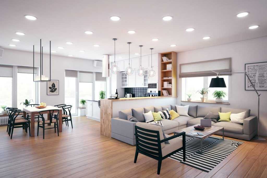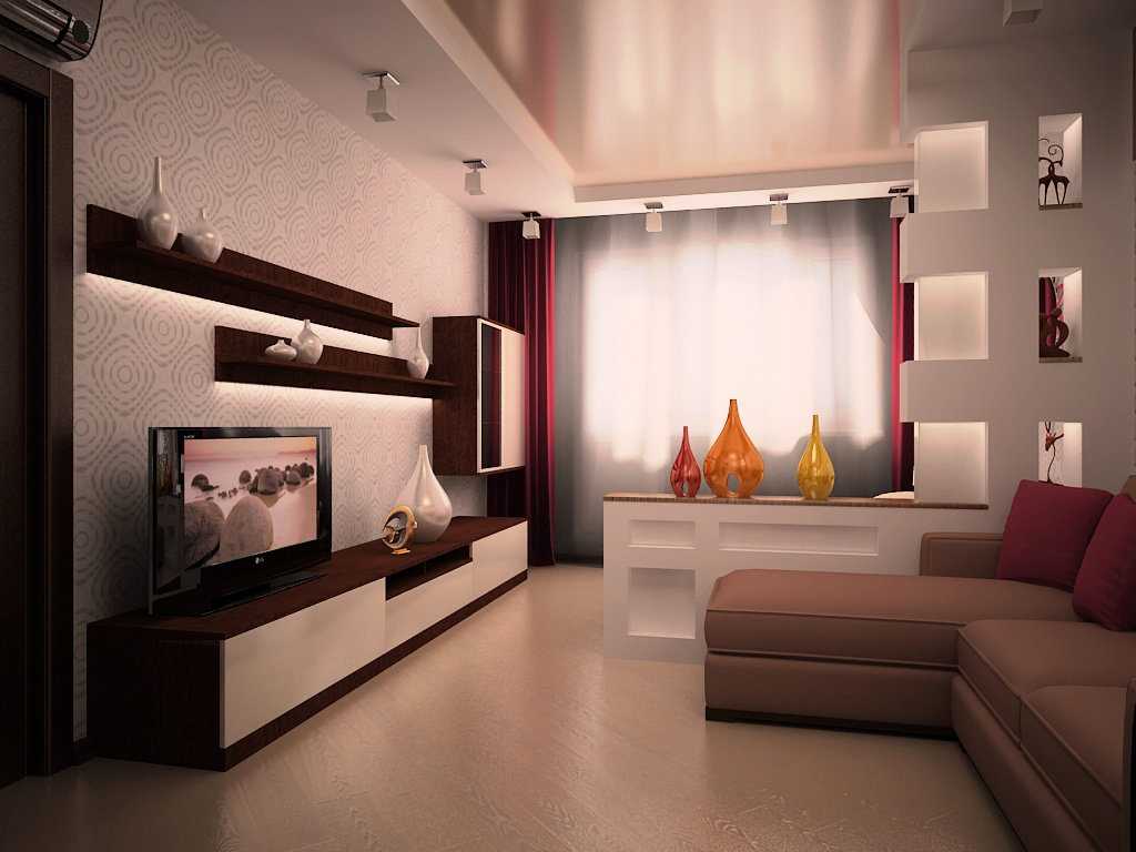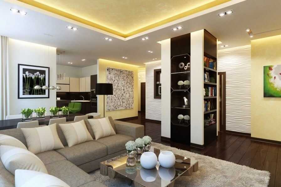 Если гостиная не может похвастаться своими габаритами, то есть способы их увеличения. Все чаще в малогабаритных квартирах присоединяют к ней кухню. Таким образом, получается отличный вариант студии. Он обладает большими возможностями и позволяет реализовать любые дизайнерские решения.