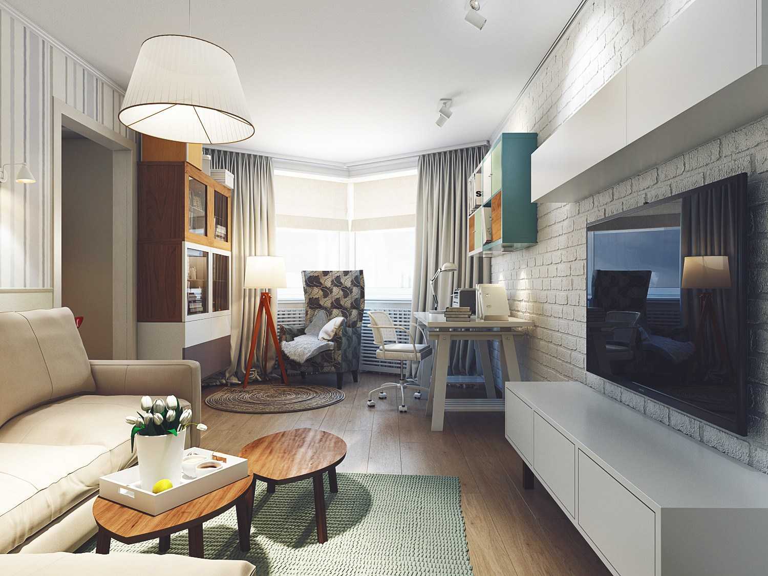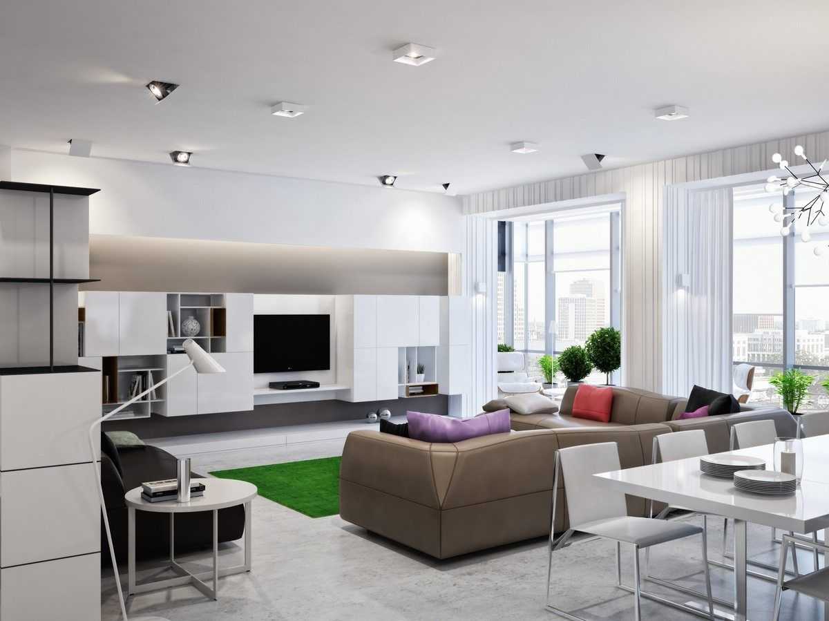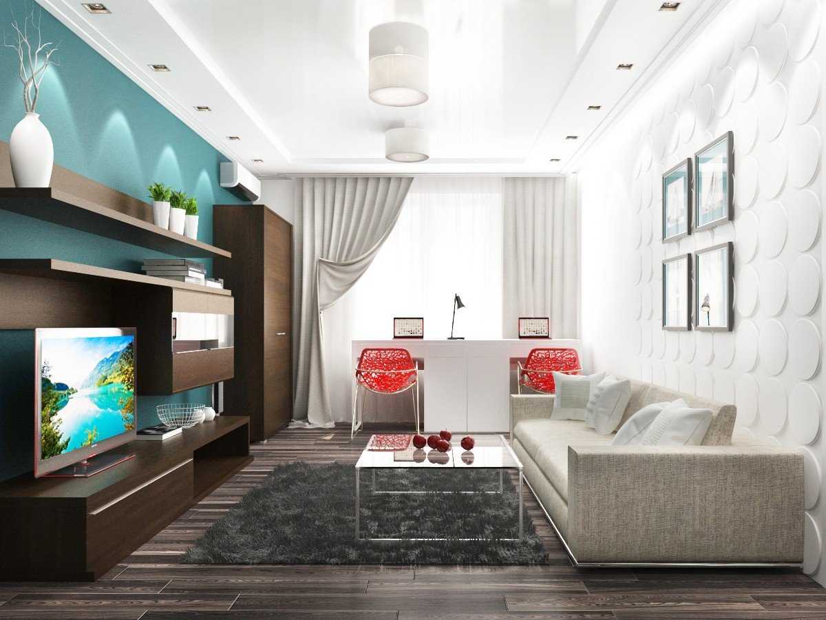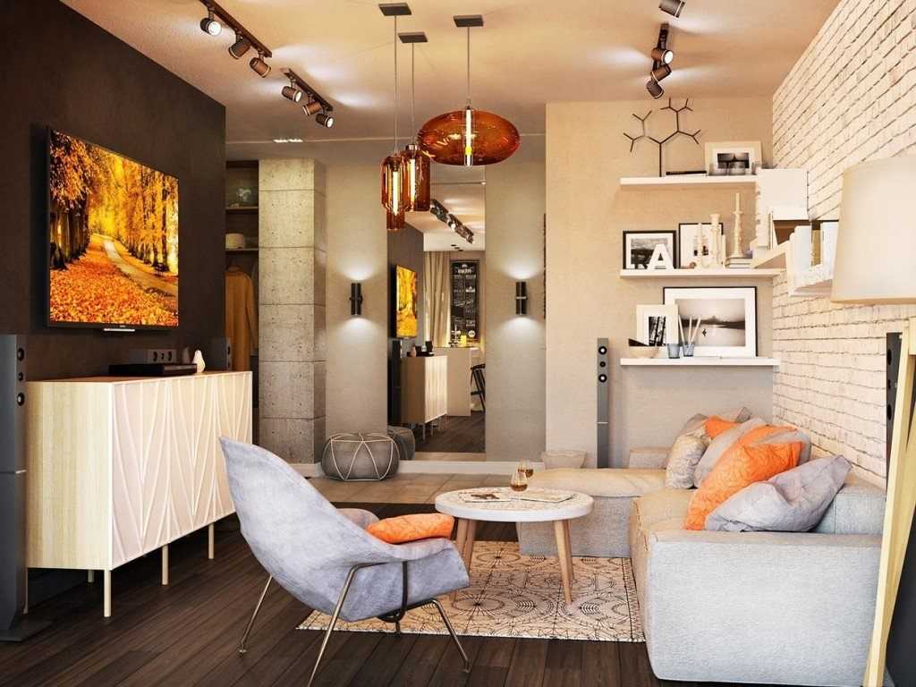Для оформления такого помещения хорошо подойдет два или три цвета. Это позволит его разделить на несколько зон, обустроенных разными способами. Для оформления интерьера малогабаритных квартир лучше отдать предпочтение одному стилю.