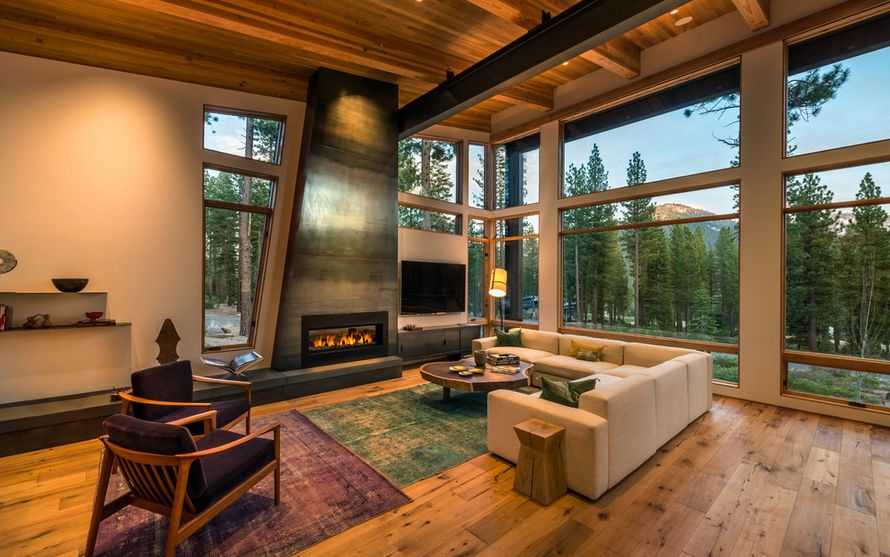 - Натуральные, дорогие материалы (много дерева и изысканного текстиля);