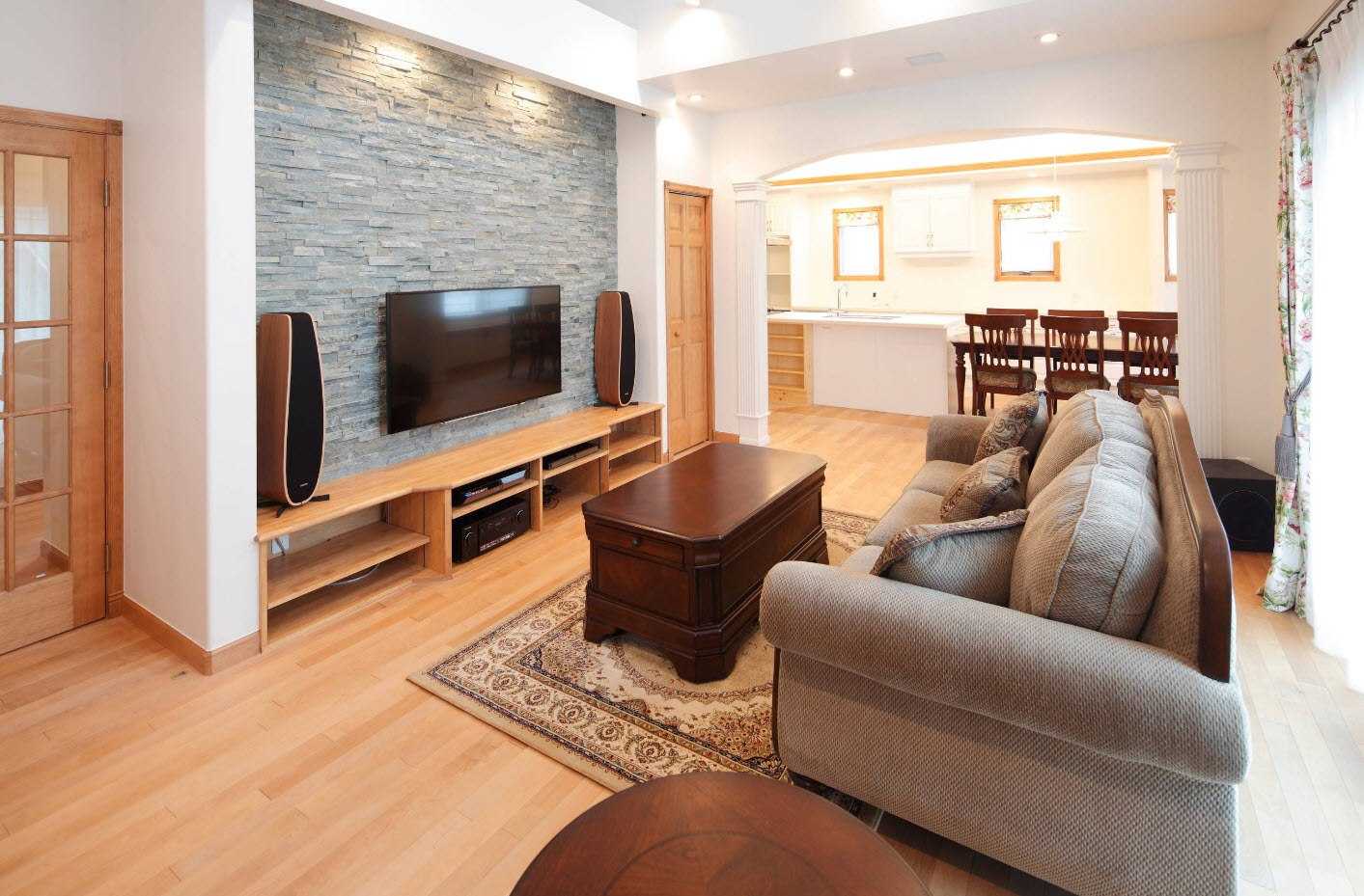 В отделочные материалы для обустройства гостиной входит настенная, напольная и потолочная облицовка. Сегодня на строительном рынке представлен широкий ассортимент материалов, посредством которых можно сделать отделку главной комнаты дома своими руками не хуже опытных мастеров.