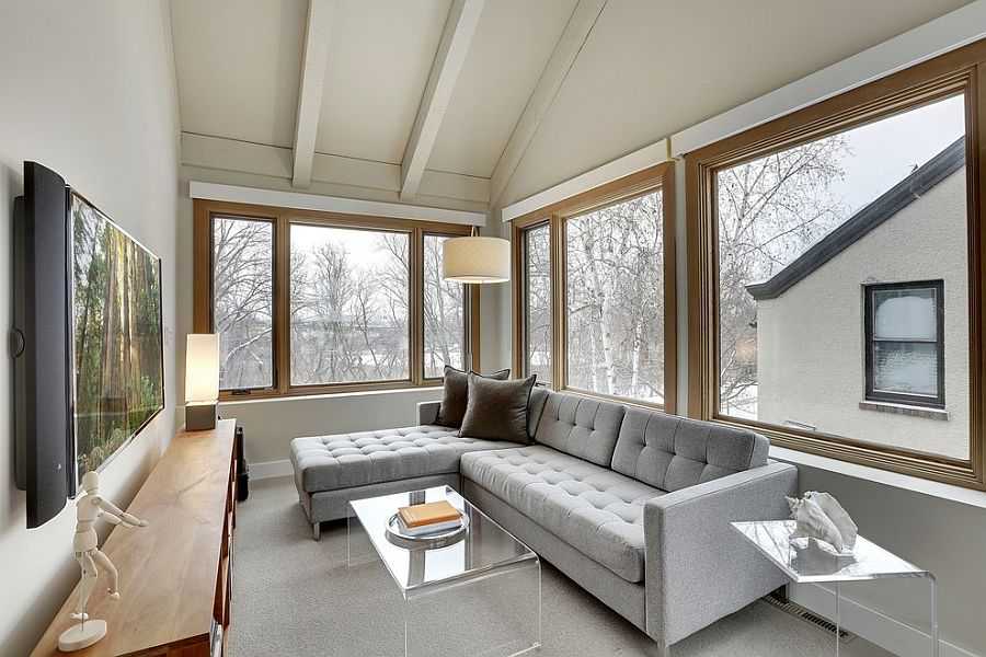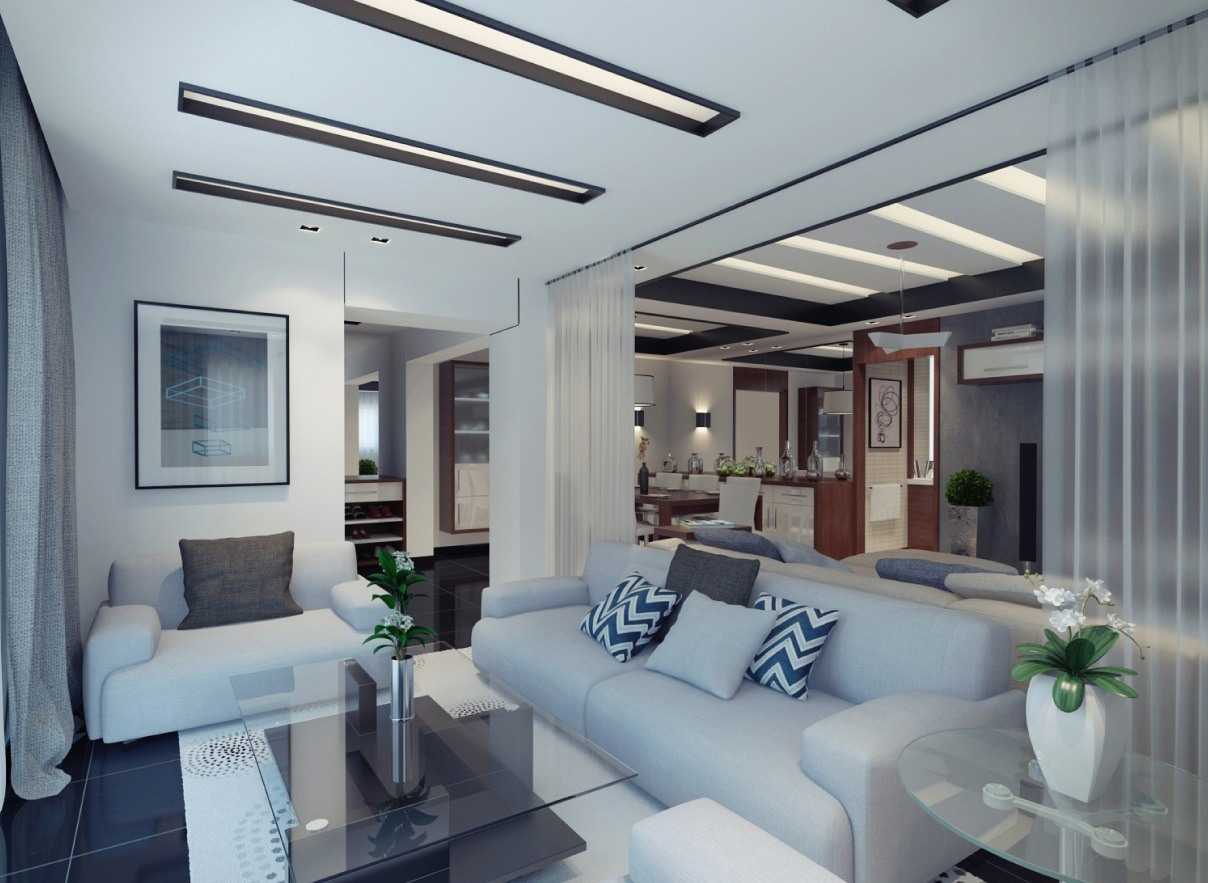 Это идеальный способ обустройства комнаты, предназначенной для приема гостей. Он делает ее красивой и модной. Главное его достоинство в том, что габариты комнаты увеличивается не визуально, а фактически.