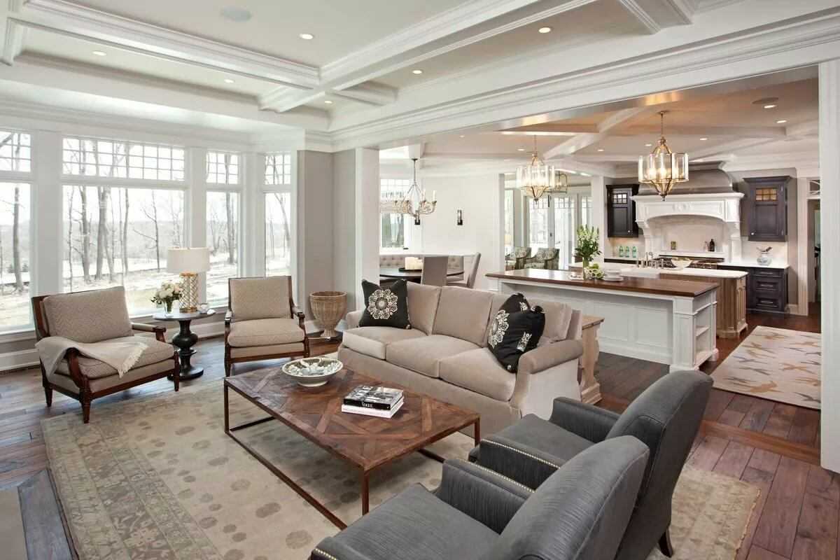 Ранее повседневная, шумная и грязная кухня была отделена в пространстве от нарядной, тихой, чистой гостиной. Изменения тенденций привели к довольно частому объединению этих важных комнат в доме.