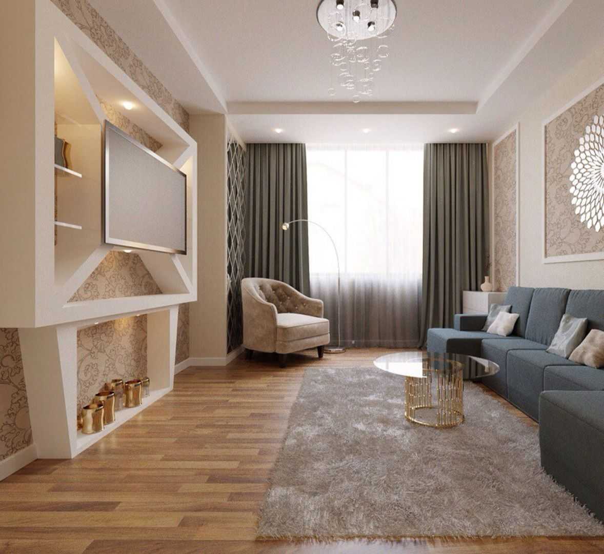 Напольное покрытие гостиной разнообразно и подчиняется конкретной выбранной стилистике: именно она диктует, какое сырье допустимо в отделке пола. Наиболее интересными материалами напольной отделки являются — ламинат; паркет; паркетная доска; линолеум; линолеумная плитка; керамогранит; наливной пол.
