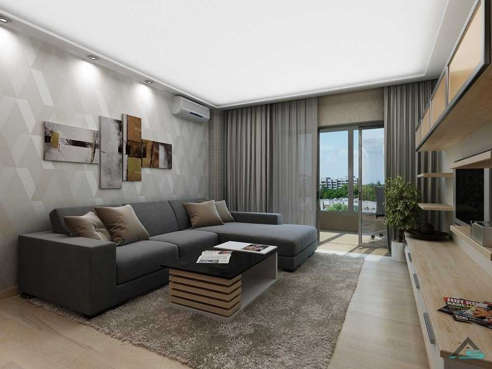 Современный стиль оформления гостиной отличается использованием нетрадиционных методов. В данном случае актуально экспериментировать и пробовать новшества. На окнах интересно будут смотреться римские шторы. Для такого дизайна подойдет круглый ковер на пол. Необходимо придерживаться во всем новых технологий обустройства, даже мелочах. Телевизор не размещайте на тумбочку, лучше его повесить на стене.