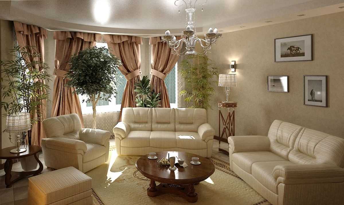 При оформлении помещения можно использовать различные цвета, но их должно быть не более трех, и они должны хорошо сочетаются между собой. Основным трендом является белый цвет, который актуален для каждого стиля. Он является хорошим фоном для будущего воплощения самых интересных идей и неожиданных решений. Фото красивого интерьера зала в квартире наглядно это демонстрируют.