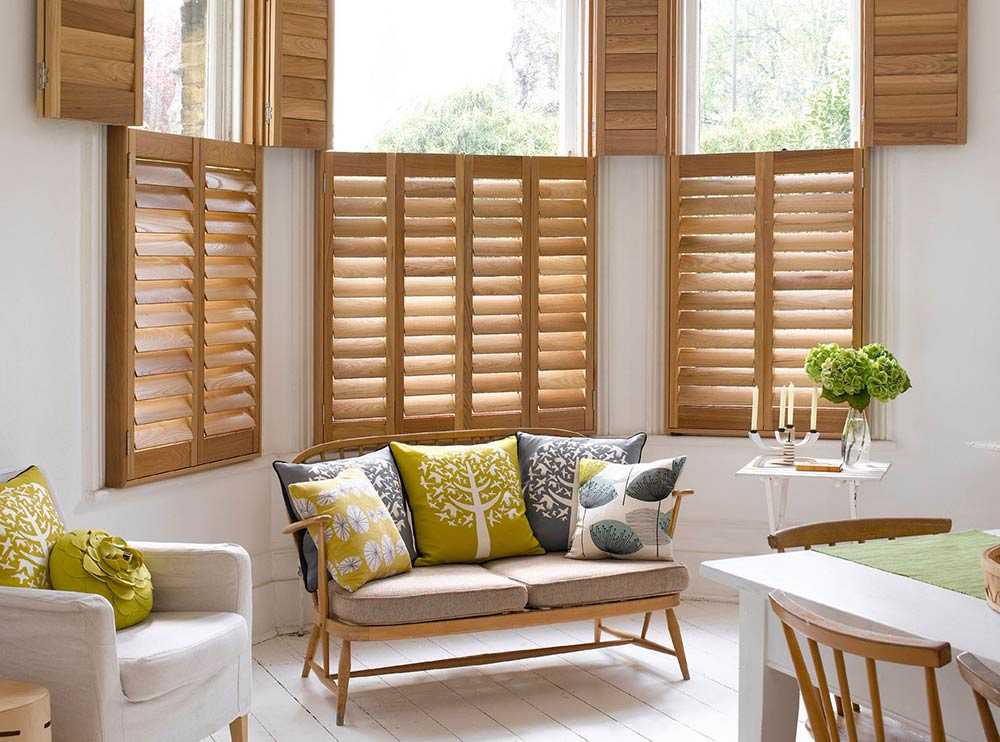 В дополнение к вышеперечисленным известным решениям у нас также есть ряд других. Например, ставни, то есть внутренние заслоны, которые набирают популярность. Они позволяют полностью затемнить гостиную и дают очень интересный визуальный эффект. Выглядят лучше всего, когда имеют цвет стен или натуральный окрас темного дерева. Подойдут как современным, так и классическим гостиным.