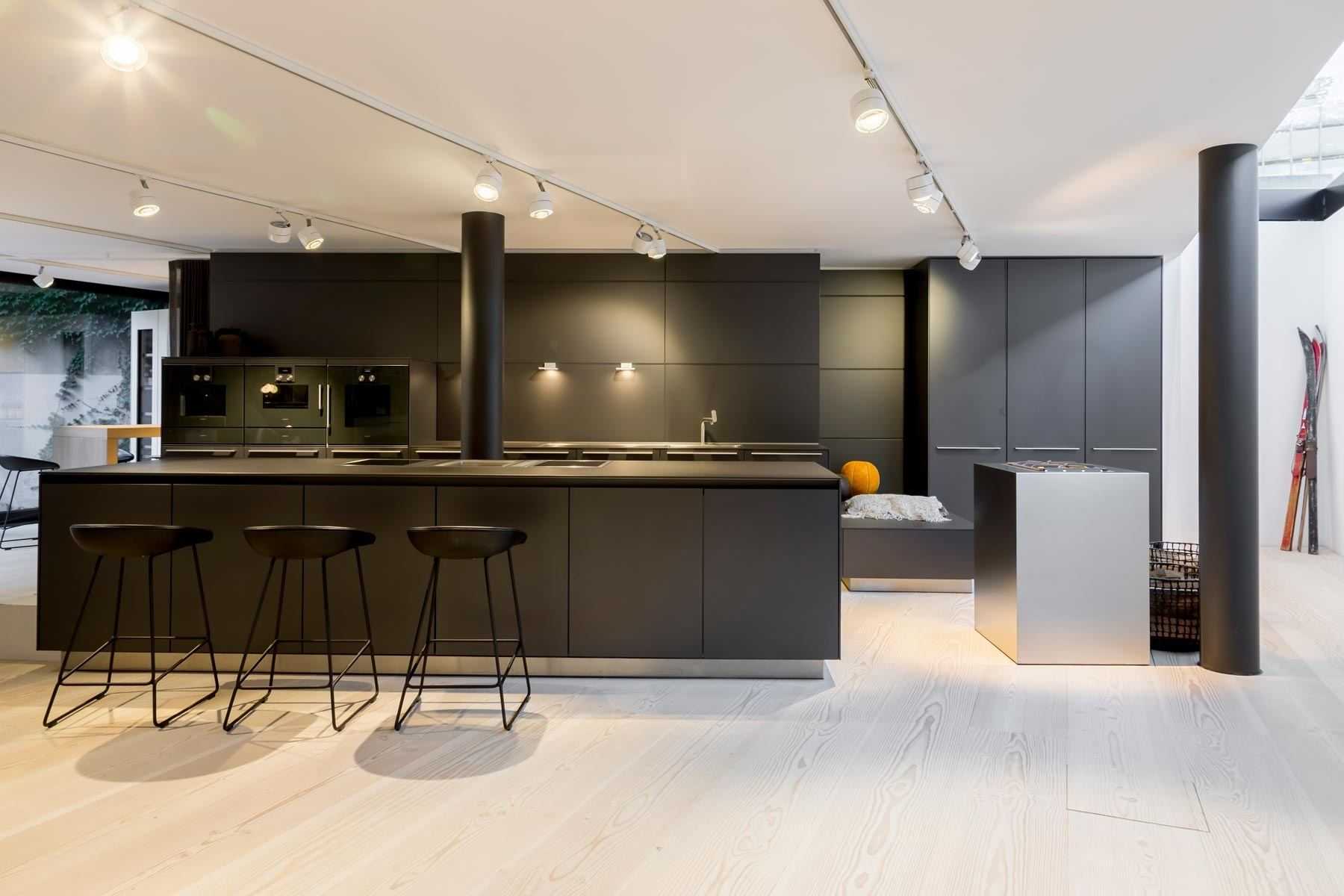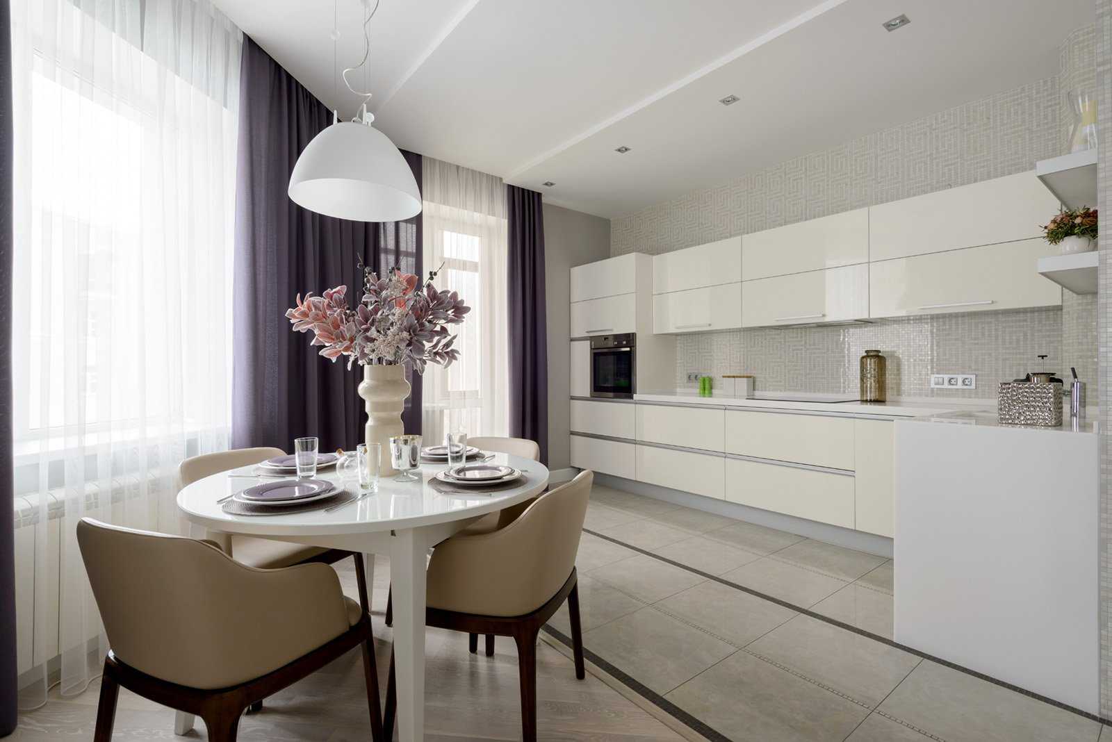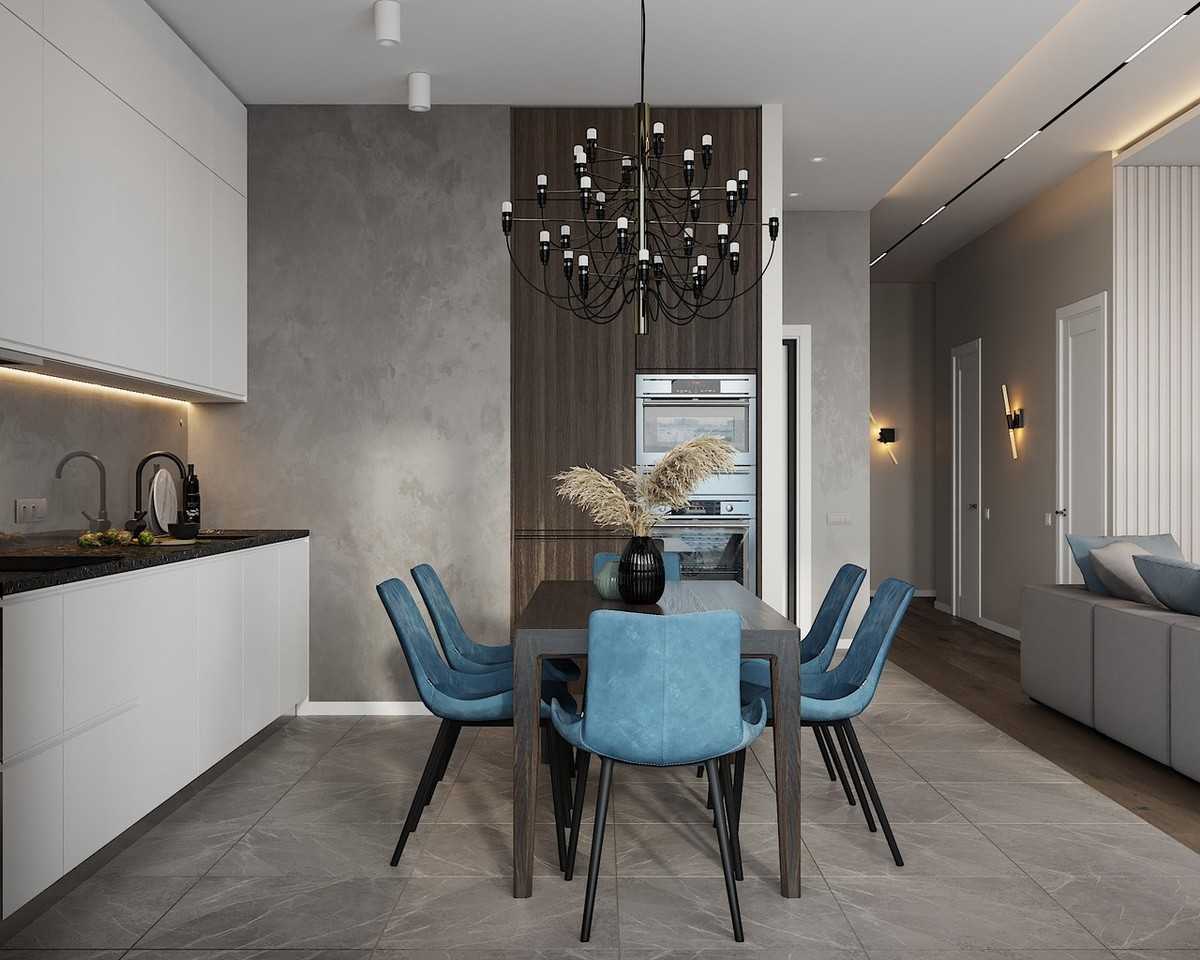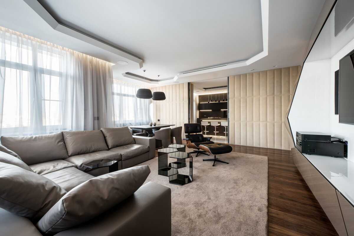 Вторым основным фактором, определяющим стиль, считается большое пространство. Современные жилые комнаты в квартире обычно высокие. Перегрузка пространства мебелью исключена. Часто кухня совмещена с гостиной, чтобы набрать лишние метры. В таких случаях кухня может появиться как в виде пристройки, занимающей только одну стену, так и по договоренности с островом.