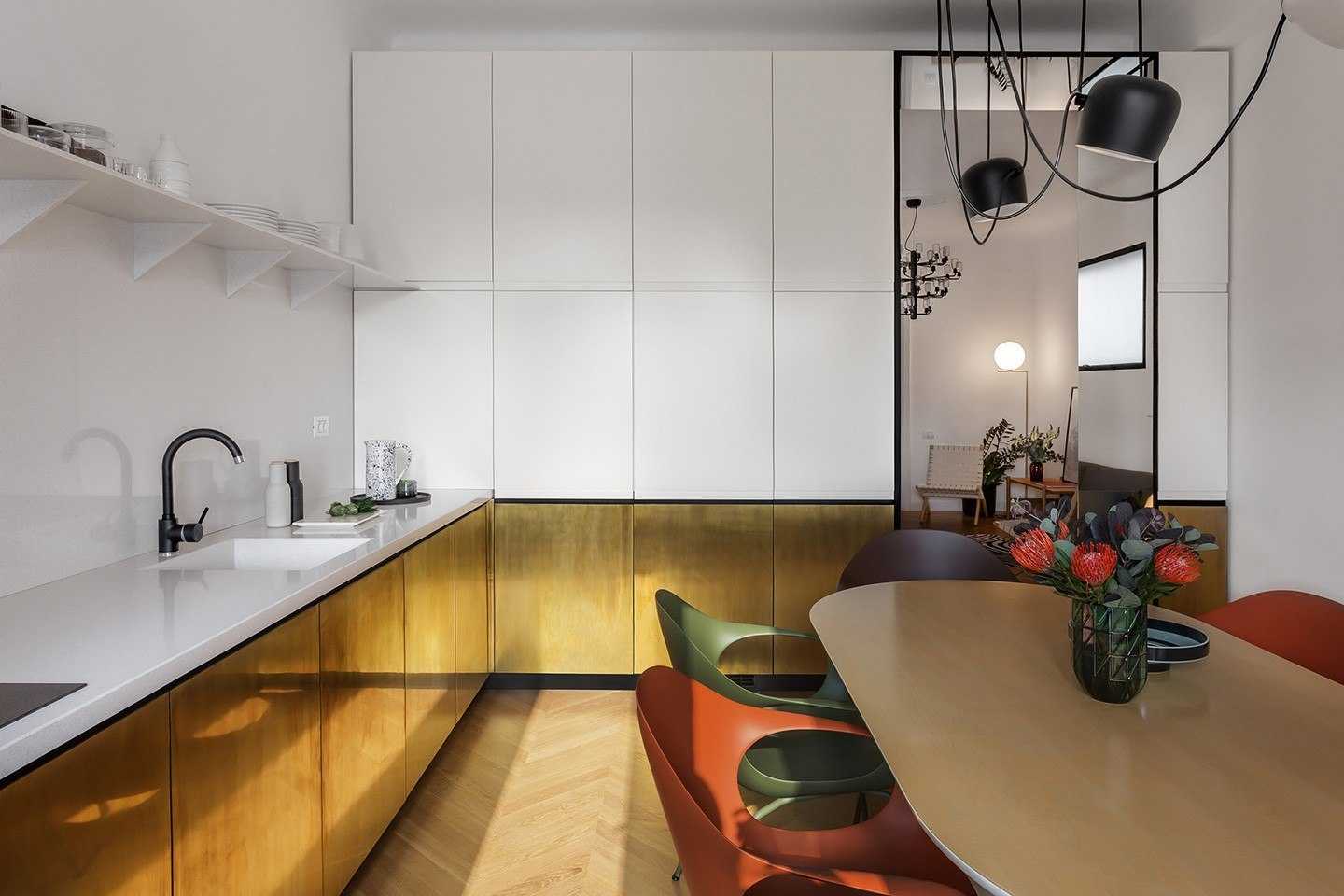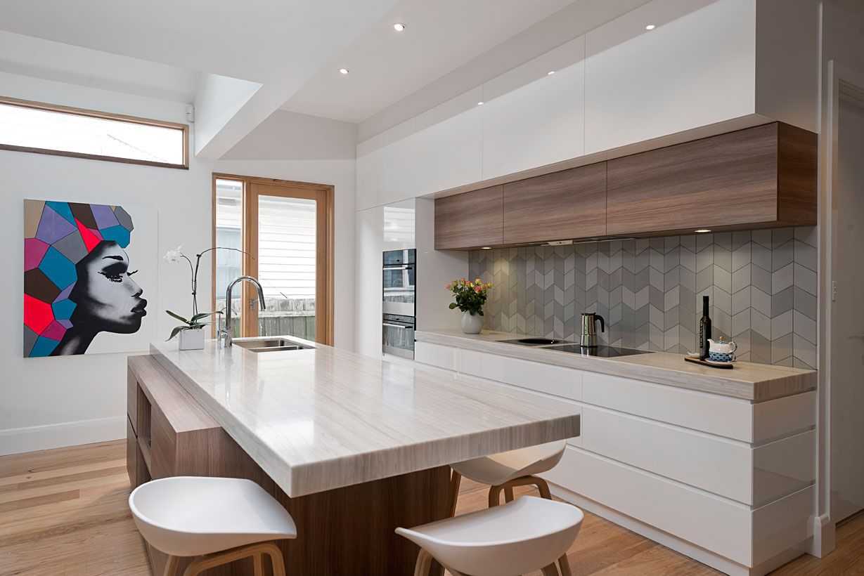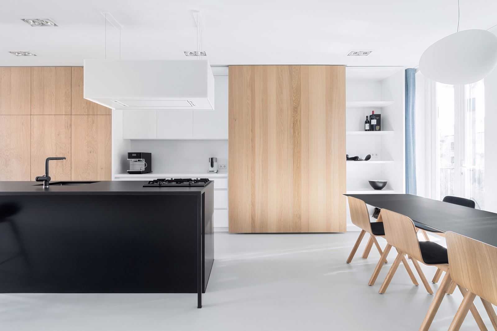 Вторым основным фактором, определяющим стиль, считается большое пространство. Современные жилые комнаты в квартире обычно высокие. Перегрузка пространства мебелью исключена. Часто кухня совмещена с гостиной, чтобы набрать лишние метры. В таких случаях кухня может появиться как в виде пристройки, занимающей только одну стену, так и по договоренности с островом.