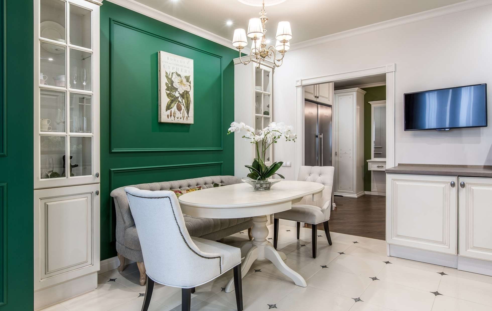 Эта расцветка представляет собой сочетание современности, свежести и спокойствия, исходящего от природы. Интерьеры таким образом станут оригинальными и неповторимыми. Помните, что не только стены могут быть подчеркнуты сильными цветовыми акцентами, сделайте также ставку на изменения аксессуаров, мягкой мебели или фасадов шкафов.