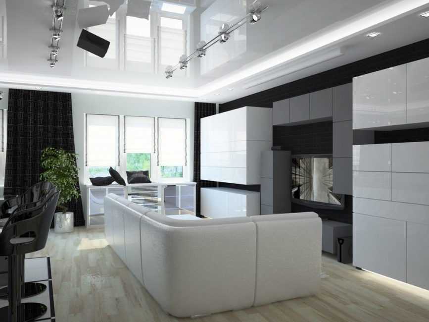 Чаще всего для гостиной в стиле хай-тек берут следующие цвета: