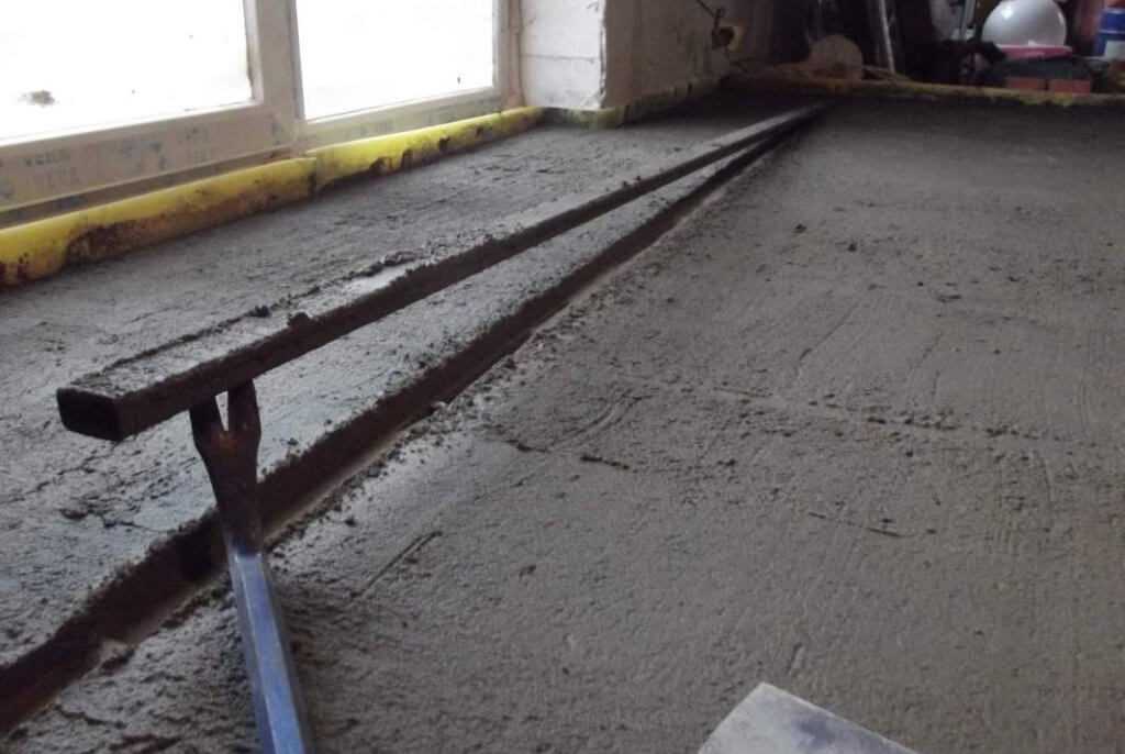 Поверхность, сформированная застывшим раствором цемента, выполняет функцию направляющих для стяжки по полусухой и мокрой технологии.